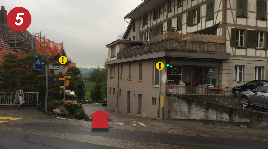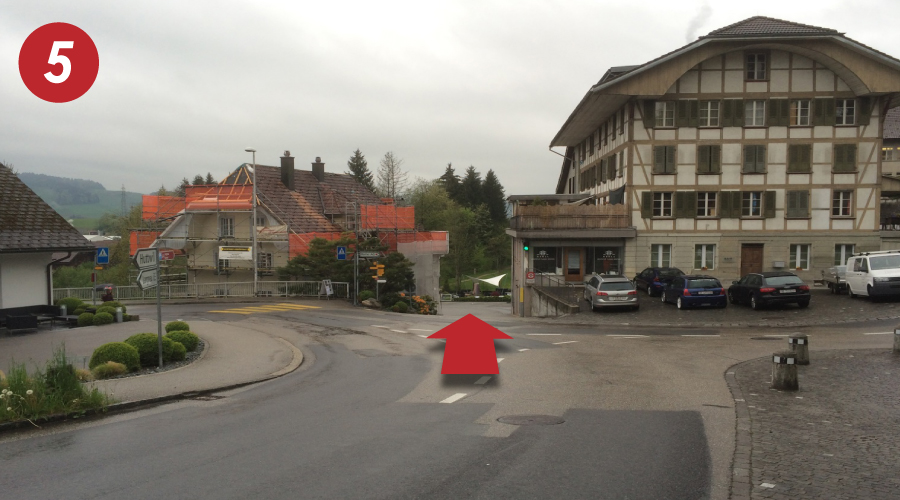4. WICHTIG! Die Anfahrt durch den Ortskern ist mit dem LKW nicht möglich. Bleiben Sie daher auf der Hauptstrasse und folgen Sie der Signalisation
