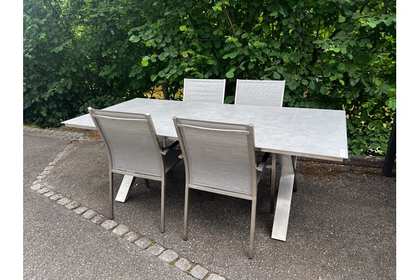 Gartentisch Monaco, Edelstahl X-Form, 210x100 cm Keramikplatte grau mit Strukturoberläche